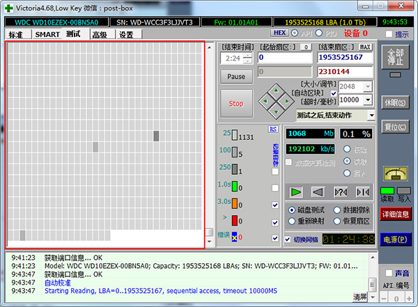 执行扫描,如上所述,您可以使用Victoria对您的硬盘进行表面扫描,以确定潜在问题。每个接受扫描的扇区都根据其性能指数进行标记。应用程序能够忽略、重新映射、擦除或恢复检测到错误的扇区中的数据,为您提供了在这种情况下要遵循的操作过程的几种可能性。