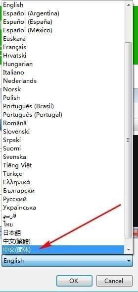 默认为英文界面,选择中文:选项->;选择语言->;中文(简体)