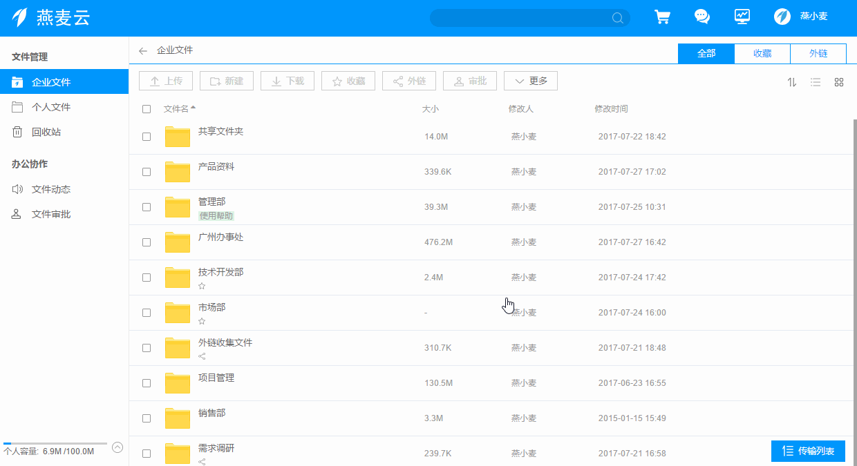 收集文件(文件夹)。当收集到的文件(文件夹)被任何人操作时,系统会将实时动态推送给你。您可以通过登录任何燕麦云客户端并查看最新的文件内容来接收和查看动态更新。