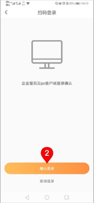 此时需要在手机上打开企业萤石云app,确认已经在app中登录了自己的账号(相关操作请参考app管理操作手册)。在app首页点击扫描,在电脑屏幕上扫描二维码。