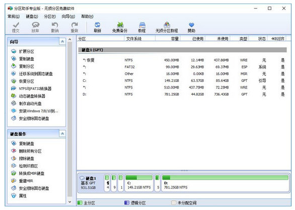快速硬盘分区调整。