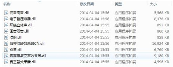 声音包中包含的声音文件有:低音高音。dll,回声双音素。真空管压缩机。dll,环绕立体声。dll,双音素。dll,混响。dll,主乐队温暖效应器CN.dll,音高修复变声效应器。dll和真空管效应器。dll。