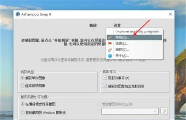 2.弹出对话框。我们继续单击“设置”,并从设置下拉菜单中选择“常规”。