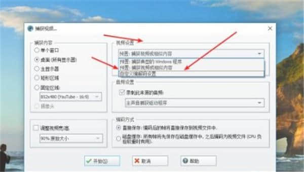 5.点击捕获,捕获类型为桌面,捕获所有显示器。
