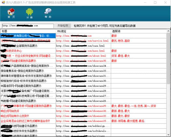 多六六查词软件下载可用于在综合网站中进行非法词和一些违禁词。多六六查词(网站非法词查询工具)会自动检测并扫描你需要的网站中不同的词,不同行业的非法词也不一样。您可以根据自己的设置查询网页中的非法词语,各种不同的自定义功能可以让您轻松查询。