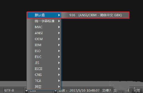 2.查看页面底部的编码格式,然后单击底部的三角形箭头。