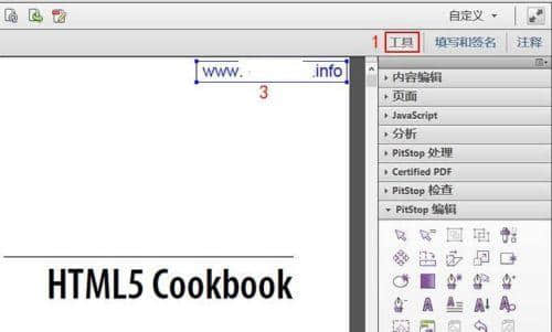 1.打开软件,在PDF的任意一页上选择:工具——PitStop编辑—选择区域,这样可以把水印圈得越小越好。