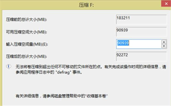3.您可以选择要释放的空间大小。注意这里的单位是MB。
