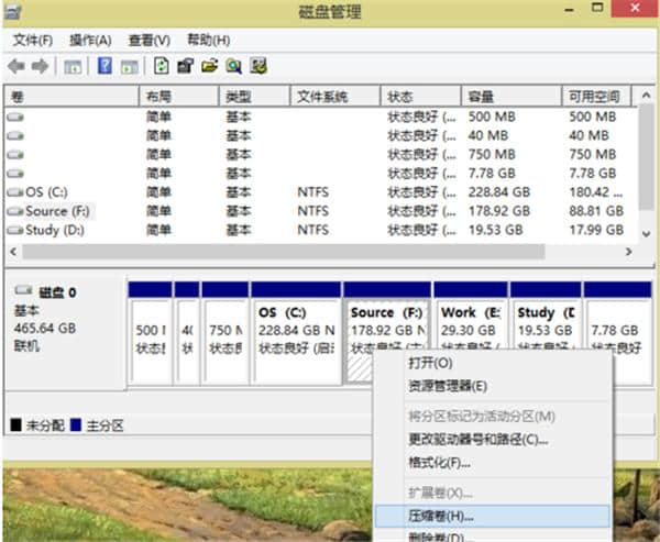 2.这样,我们可以看到我们的磁盘。右键单击并选择“压缩磁盘”。