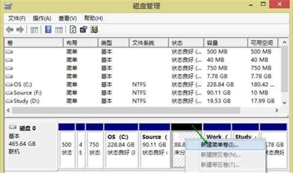 5.右键单击新空间并选择“新建简单卷”以完成最终分配。