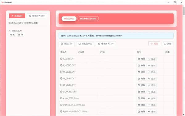 2.支持自定义名称功能,直接在软件中重命名原文件名。
