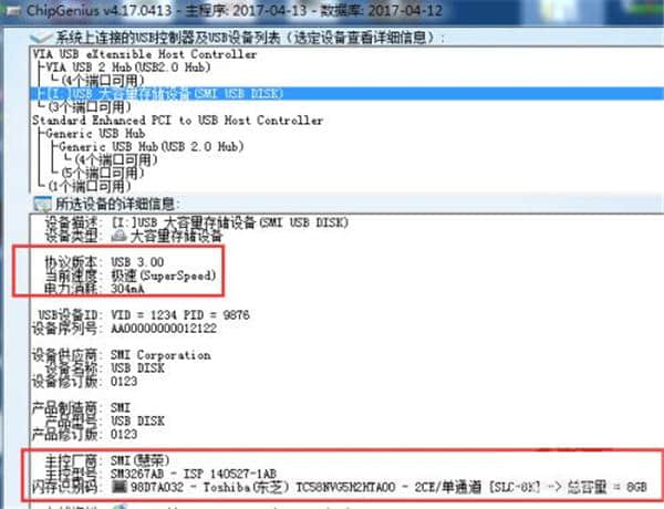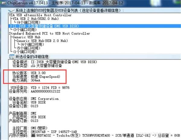 4.先看这部分,显示了u盘的接口类型和u盘的电流强度。