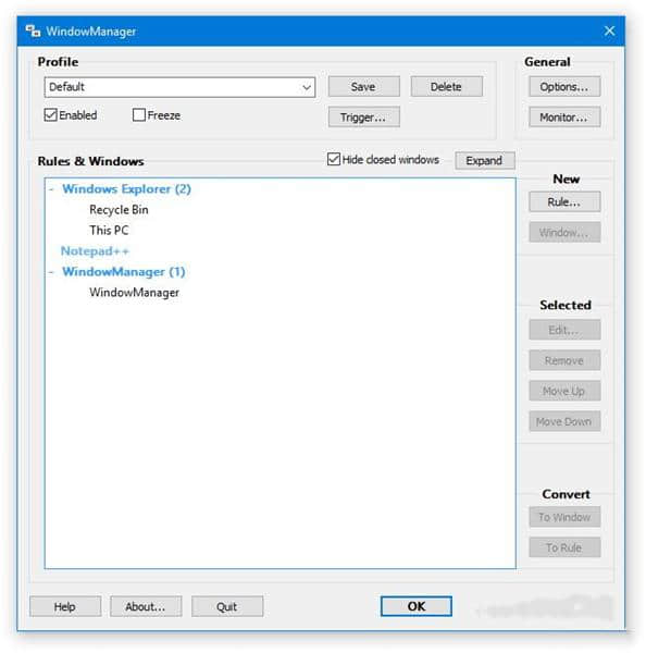 WindowManager这个软件有一定的特点,简单易操作,也为很多用户提供了一个非常实用的管理设备。WindowManager它让我们可以自由调整切换窗口的大小,同时可以完善各种办公流程操作和先进的资源管理工具。WindowManager还可以实现托盘最小化方案,力求为您提供全面的功能优势。