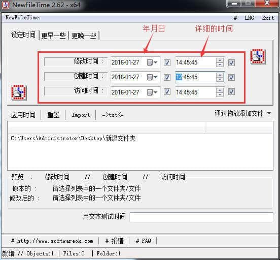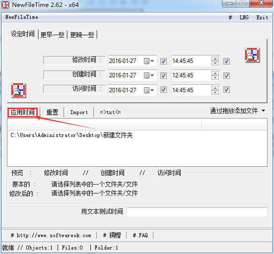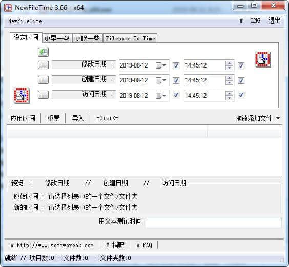 NewFileTime软件是一个非常好用的日常应用小工具。对于我们每天创建的文件,我们可以修改时间,上面的属性设置不能随便修改。但是,NewFileTime很好的解决了这个问题,同时也可以满足用户批量修改属性,为我们的日常工作提供了更多的效率。
