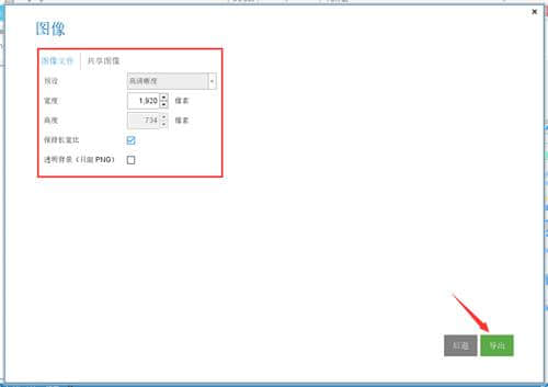 4.设置数据、定义等。然后选中最后一个选项“透明背景(仅限PNG)”,最后点击右下角的“导出”按钮。
