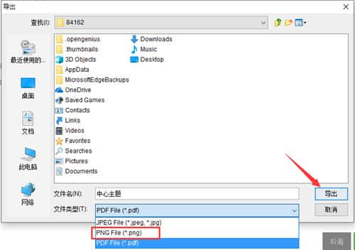 5.在导出窗口中,将文件类型更改为png(只有png格式支持透明背景),然后单击导出。