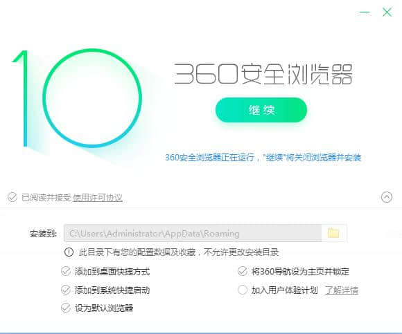 2.安装过程需要一些时间。请耐心等待。安装后,360安全浏览器将运行。