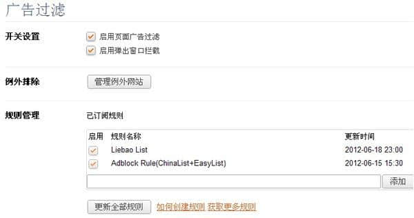目前猎豹自身的广告过滤功能比较完善,不再需要ABP等广告插件。