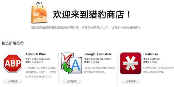 2.升级应用中心,大量高质量插件让猎豹更容易使用。更多精品推荐:实用工具、购物比价、社交网络、休闲娱乐、消费工具。