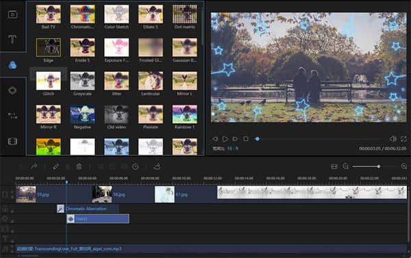 2.它有叠加功能,可以快速添加相关效果,还支持滤镜的功能。