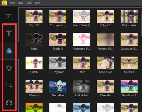 1.进入蜜蜂剪辑软件的基本编辑窗口,左边是特效工具一栏。