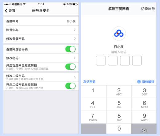 4)网盘登录的保护功能:可以设置指纹等各种形式的二级密码锁进入网盘,保护你存储在网盘上的数据。