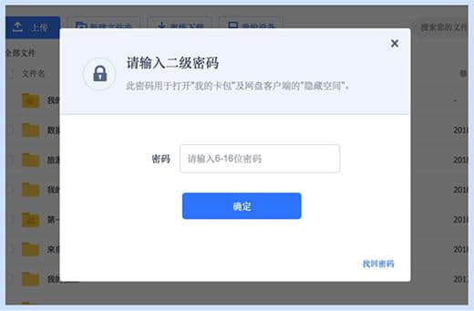 除了登录密码,还可以设置二级密码锁进入网盘,保护存储在网盘上的数据。