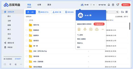 如果需要上传4G以上的文件,可以百度网盘会员,其中: