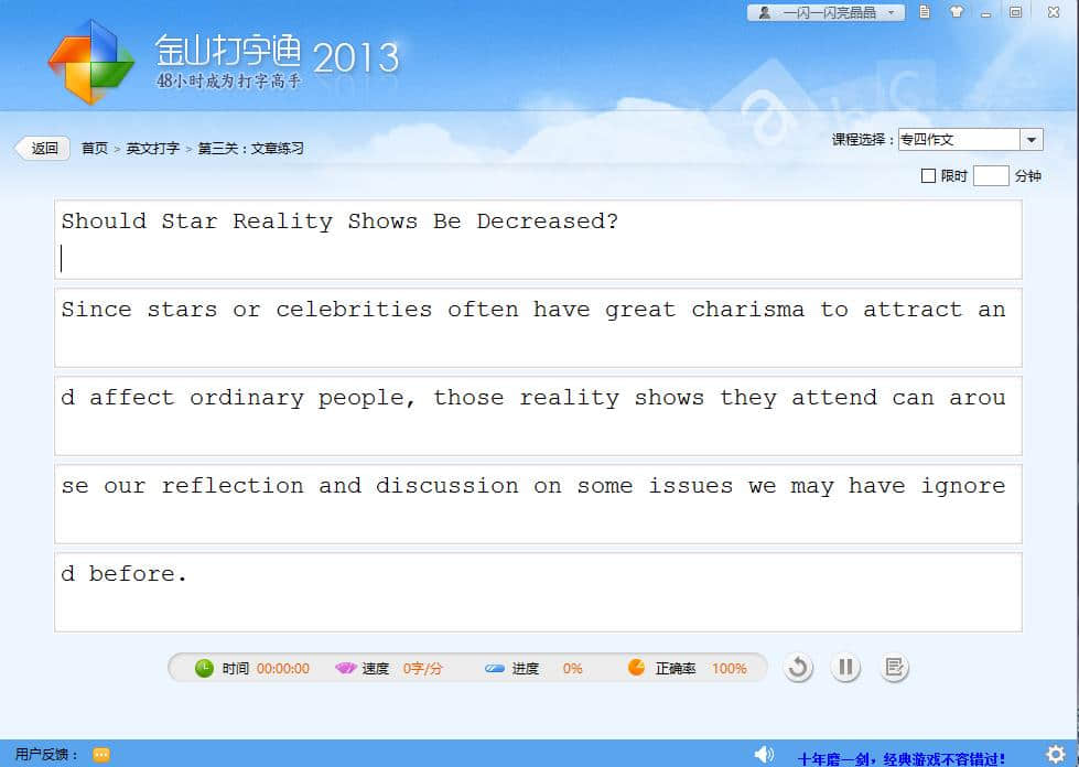打字练习成绩随时都有,还可以跟打字高手PK比拼。