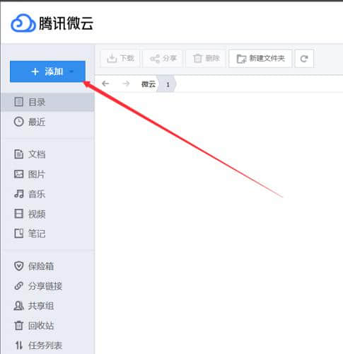 2.登录微云后,点击软件左上角的[添加]按钮。