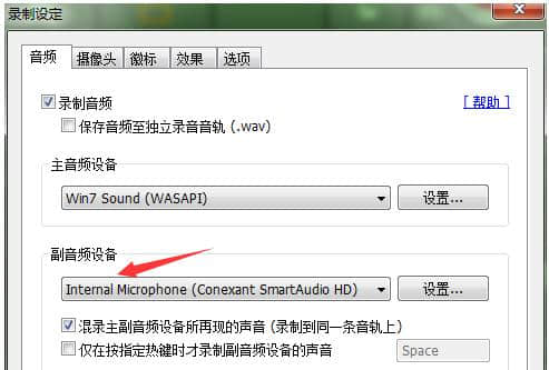 3.如果您想在录制过程中使用麦克风声音,您只能通过将“辅助音频设备”设置为启用来使用麦克风声音。
