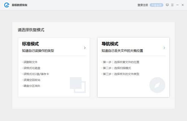 2.提供标准模式和导航模式,您可以根据实际恢复场景进行选择。