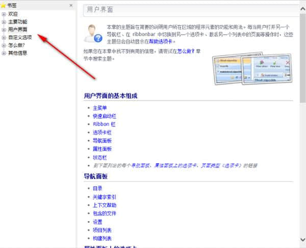5.提示左侧显示目录,勾选chm显示的目录,点击目录跳转到需要的界面。