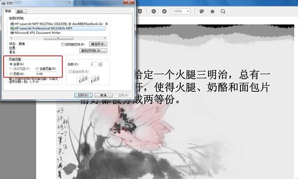 2.找到文档后,您可以开始打印文档。单击工具栏上的打印标记,您可以选择是部分打印还是全部打印。需要提醒的是,所有打印都需要先加载文档的所有页面,也就是预览是否所有文档都是先加载的,否则会出现空白页。