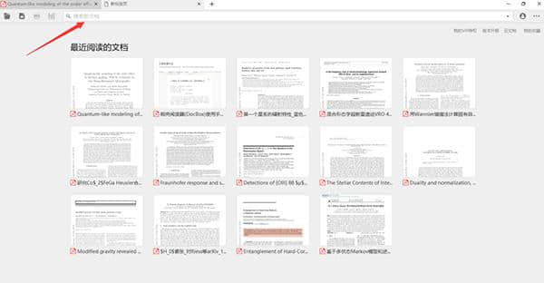 1.打开稻壳阅读器,找到一个文档,顶部是在线文档搜索框。搜索所需文档的关键字以找到相应的文档。