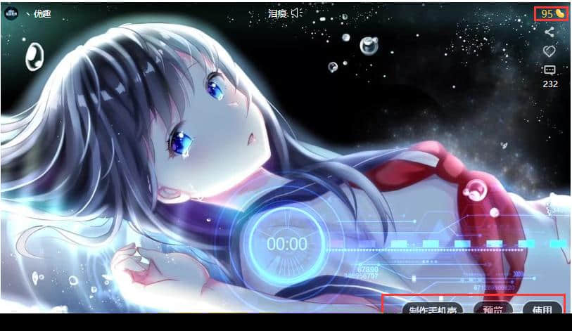 4.找到你喜欢的360壁纸。壁纸右上角有95豆,花钱后才能用。右下角有shell、预览、使用功能,可以根据需要选择。如果您选择一个外壳,弹出窗口会让您选择一个动画作为外壳图片。