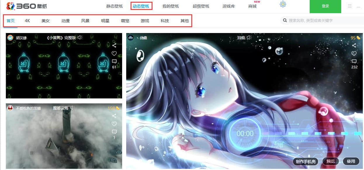 360壁纸软件功用: