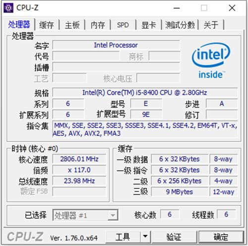 1.双击打开下载的中文版CPU-Z软件。打开软件后,您可以看到计算机处理器的相关内容。