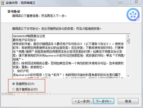 3.单击接受协议,然后单击下一步。