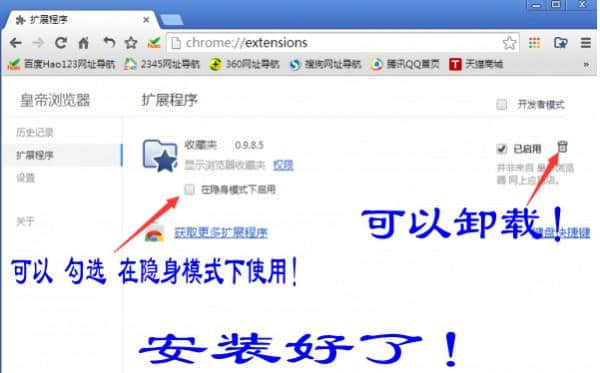 皇帝浏览器支持谷歌chrome浏览器的所有扩展、应用和背景皮肤。