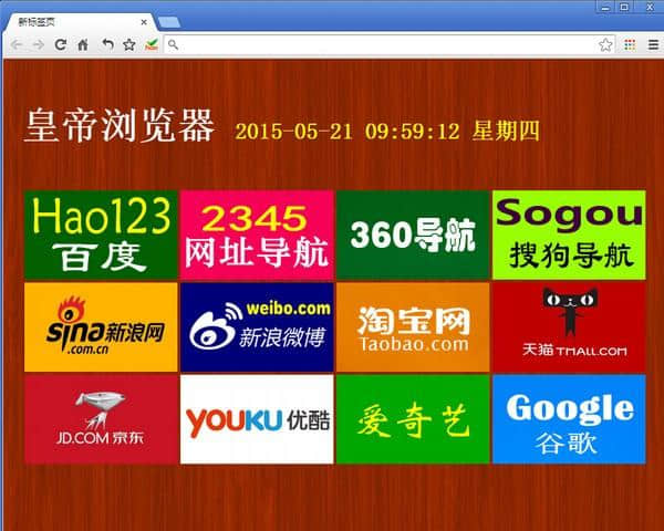 皇帝浏览器新增的标签页选择了中国人最常访问的12个网站,上网更加方便。