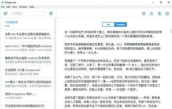 Simplenote安装非常简单、功能强大,且无安装垃圾,特地推荐给大家,欢迎大家下载!另外还推荐AIDA64 Engineer等软件推荐给您下载使用,如果需要不妨下载试试!风里雨里小编等你!