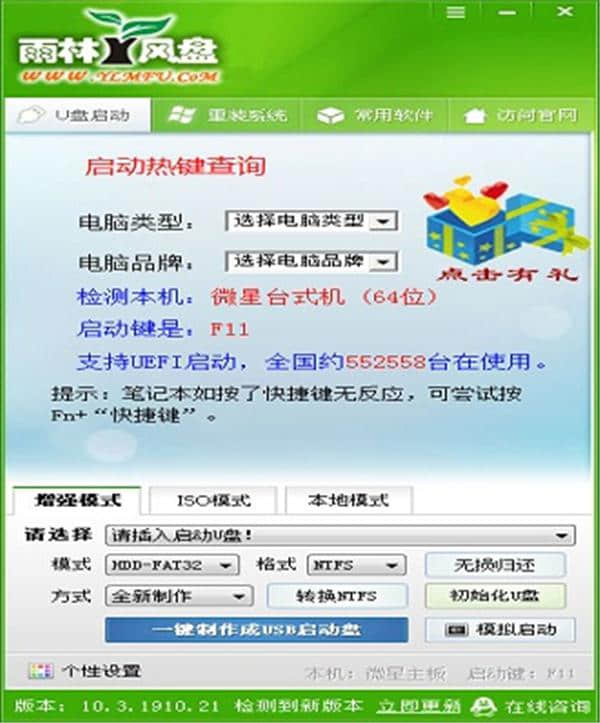 第二步:用雨林之风u盘的软件启动u盘。
