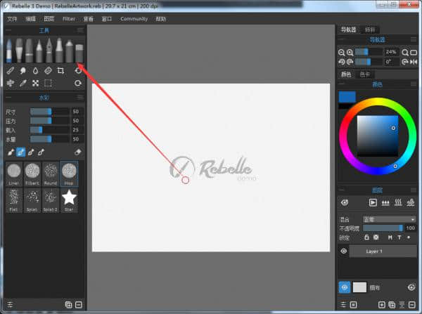 3.把每支画笔都当成橡皮擦来用,所有的水彩工具都非常全面,很容易选择。