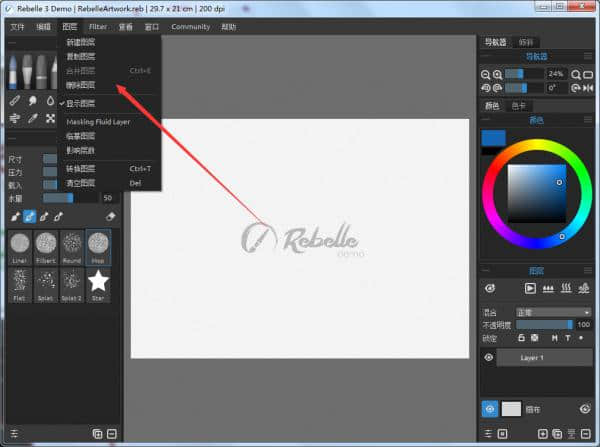 6.菜单功能可以管理图层、编辑图层和合并图层。