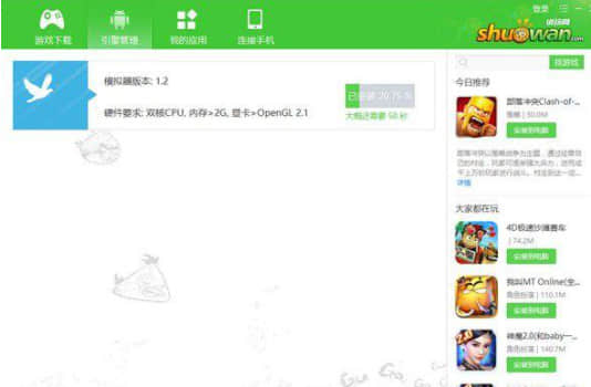 玩手机助手,也叫玩模拟器,可以帮助玩家用电脑玩手机游戏,高清大屏,操作体验流畅!