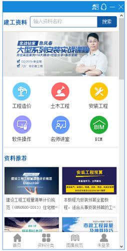 3.按资料分类,包括工程造价、土建、安装工程、图集规范、bim、名师讲堂。
