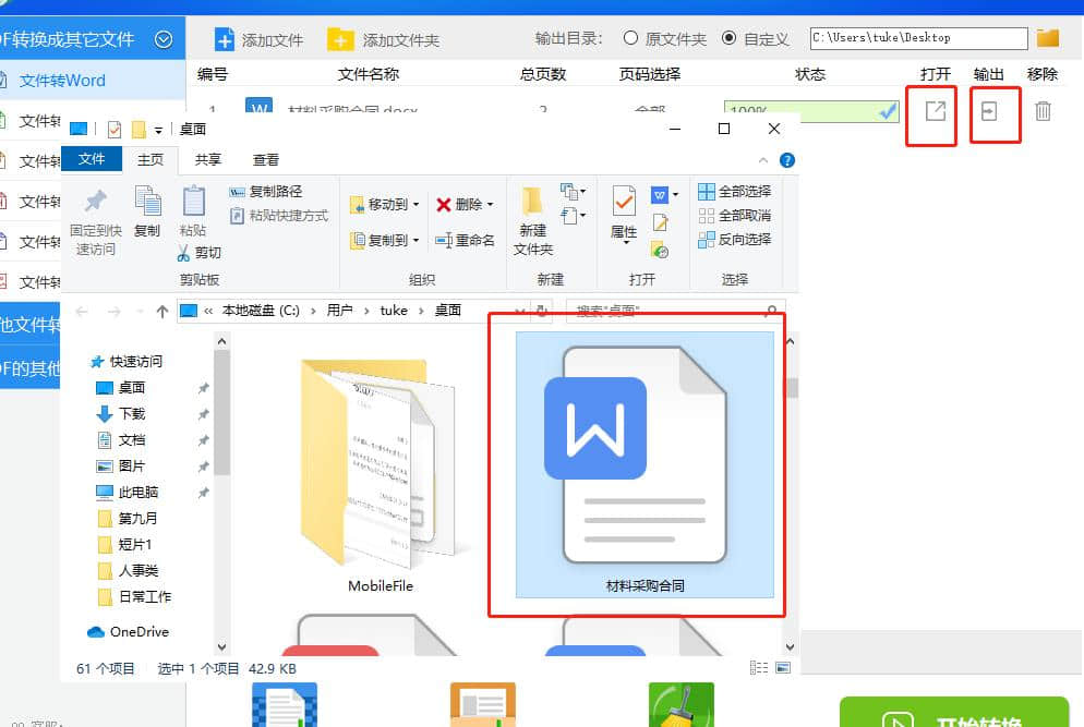 5.单击所有pdf转换器软件的[输出]或[打开]跳转到保存转换文件的文件夹。您可以清楚地看到转换后的pdf文件。