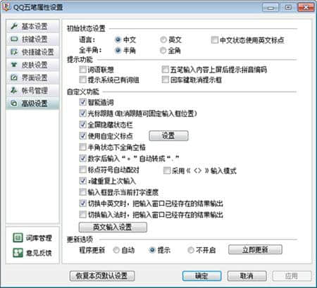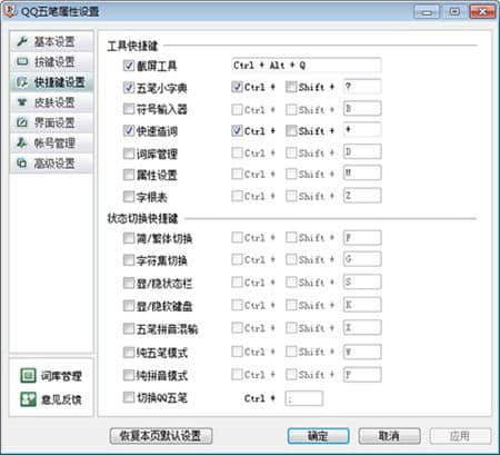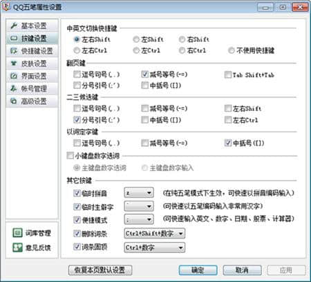 3.输入快捷键设置,可以自定义快捷键输入方式。