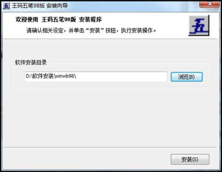 3.选择软件安装目录,默认D: Software installation winwb 98 ,点击右侧浏览修改,确定安装位置后点击安装按钮。